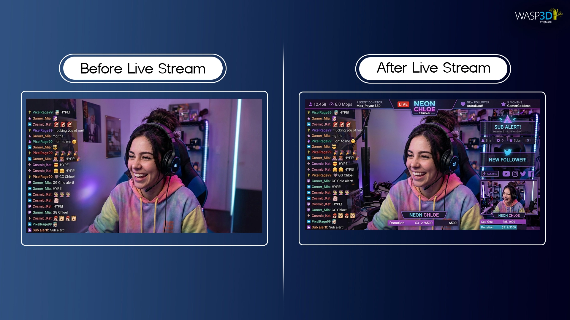 Using tools like Wasp3D Xpress allows production teams to reuse graphics designs while simply changing the content. This saves time and ensures consistent visual quality across streams.